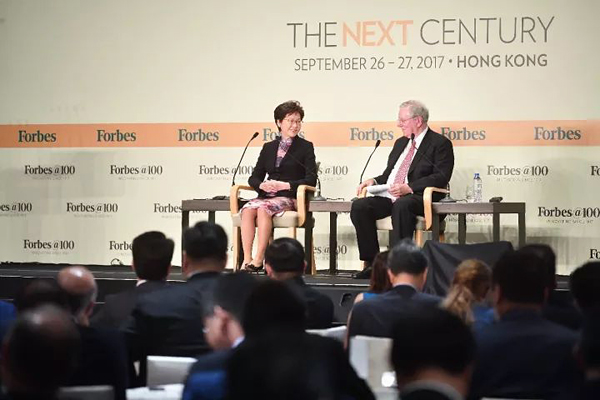 林郑月娥女士与福布斯家族主席史蒂夫 ? 福布斯(Steve Forbes)先生在会议中对话