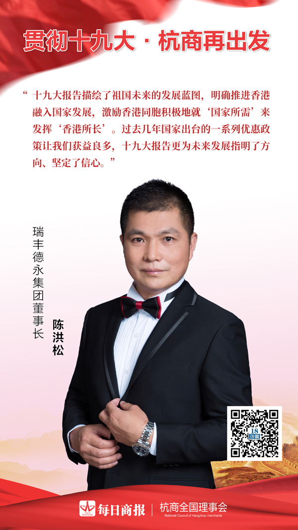 “十九大报告描绘了祖国未来的发展蓝图,明确推进香港融入国家发展,激励香港同胞积极地就‘国家所需’来发挥‘香港所长’?!比鸱岬掠兰哦鲁こ潞樗杉ざ厮担肮ゼ改旯页鎏ǖ囊幌盗杏呕菡呷梦颐腔褚媪级?,十九大报告更为未来发展指明了方向、坚定了信心。”作为总部位于香港的瑞丰德永集团,将共享祖国繁荣富强的伟大荣光,并与社会各界一同为中华民族复兴贡献一份力量。