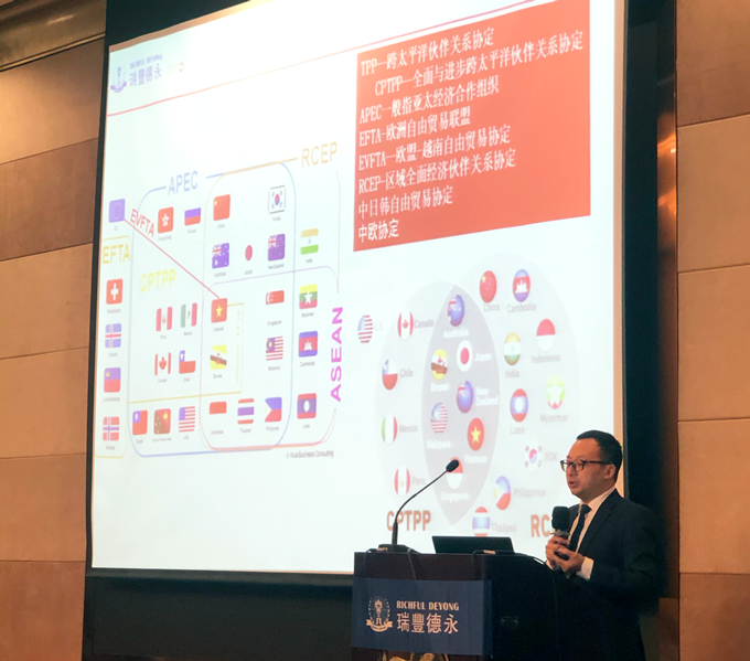 瑞豐德永集团CEO龚彦斌在会中提到:随着202011RCEP协定的落成,势必增长中国海外投资的热度。企业走出去固然有很多机遇,但同时也面临挑战和风险。在面对不同文化,不同语言,不同的市场,除了企业自身拥有合规意识外,还需要委托一家熟知当地营商环境、会计准则、法律法规的第三方服务机构,帮助企业合规,真正做到走出去、走进去、走上去!