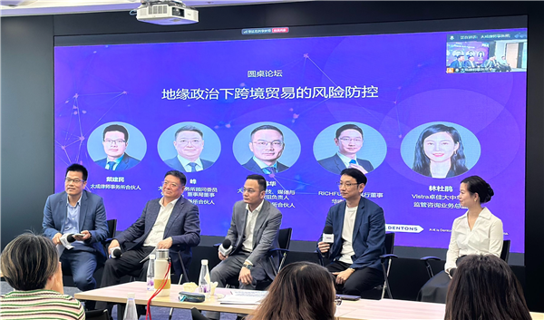 在圆桌讨论环节,大成律师事务所合伙人戴健民担任主持,与Vistra卓佳、大成律所多位专家就"地缘政治下跨境贸易的风险防控"展开深度对话。
