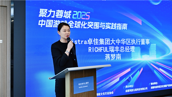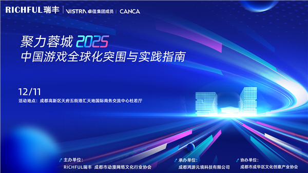 2025 年 12 月 11 日下午,“聚力蓉城 2025—— 中国游戏全球化突围与实践指南” 活动在成都高新区天府五街港汇天地国际商务交流中心杜若厅盛大举行。本次活动由 RICHFUL 瑞丰与成都动漫网络文化行业协会联合主办,旨在助力游戏企业在全球化浪潮下,快速且稳健地拓展海外市场,有效应对政策、合规及市场等多方面挑战。