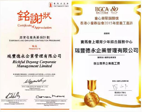 ? 荣获香港小童群益会颁发的杰出商界企业义工奖