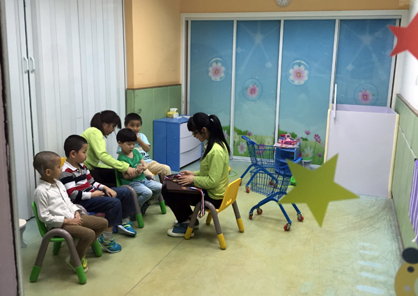 我们来到机构会议室,热情的李老师为我们介绍了自闭症这种疾病 ,自闭症这种病症病因不清,无法筛查无法预防,到1-2岁时才有明显症状,不过68:1的发病率还是让我们吃了一惊,这表示“星星们”就在离我们不远的地方。大家认真听取了自闭症早期训练的好处,以及社会、家庭对自闭症群体包容、引导、教育的责任,呼吁全社会都来关爱这个群体。