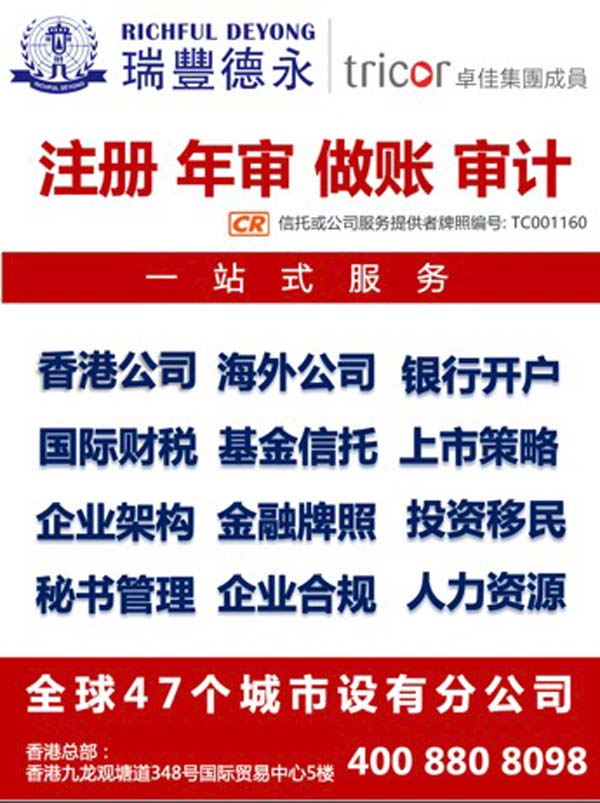 Èð·áµÂÓÀ£¨Richful Deyong£©Ïµ×¿¼Ñ(Tricor)¼¯ÍųÉÔ±£¬ÊÇÑÇÖÞ¾ßÓÐÁìÏȵØÎ»µÄרҵ·þÎñ»ú¹¹£¬ÔÚÈ«Çò21¸ö¹ú¼Ò/µØÇø47¸ö³ÇÊÐÉèÓаìÊ´¦£¬ÓµÓÐ2500¶àÃûÔ±¹¤£¬·þÎñ³¬¹ý30000¶à¿Í»§£¬1300¼äÏã¸ÛÁª½»ËùÉÏÊй«Ë¾£¬500¼äÐÂ¼ÓÆÂºÍÂíÀ´Î÷ÑÇÉÏÊй«Ë¾£¬ÃûÁвƸ»ÔÓÖ¾500Ç¿ÆóÒµ³¬40%¼°ÖÚ¶à¿ç¹úÖªÃû¹«Ë¾¡£