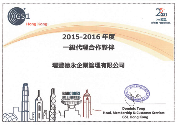 香港货品编码协会一级代理证书