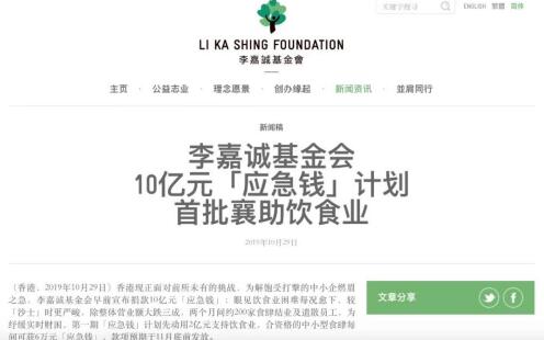 ͬһÌ죬Àî¼Î³Ï»ù½ð»á·¢²¼ÉùÃ÷£ºÏã¸ÛÏÖÕýÃæ¶ÔǰËùδÓеÄÌôÕ½£¬Îª½â±¥ÊÜ´ò»÷µÄÖÐСÆóȼü֮¼±£¬»ù½ð»á´ËǰÐû²¼¾è¿î10ÒÚÔª¡°Ó¦¼±Ç®¡±¡£
