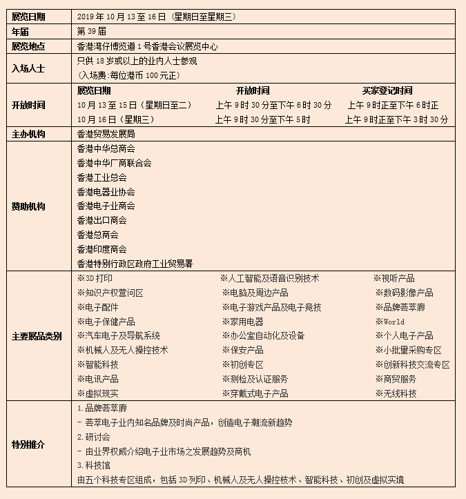 展会场内商机处处!香港贸发局香港秋季电子产品展2019将于10月13日至16日举行。2018年展览共有3743家参展商,吸引来自139个国家及地区逾63500名买家蜂拥而至,观摩最新技术。