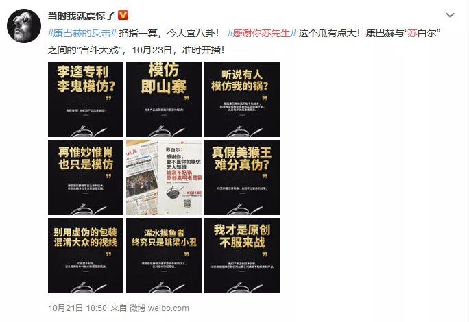 10月21日,《羊城晚报》刊登了一个落款为康巴赫的整版广告。广告的内容是:苏白尔,感谢你,要不是你的模仿,无人知晓蜂窝不粘锅原创发明者是我。
