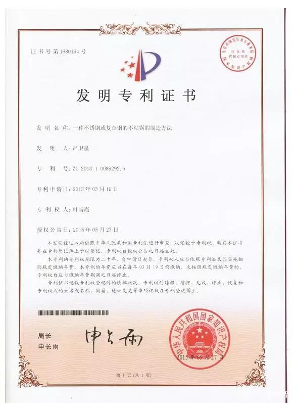 2013年3月,康巴赫蜂窝不粘锅专利技术得到国家知识产权局的权威认证,康巴赫成为官方认证的蜂窝不粘锅的原创发明者。