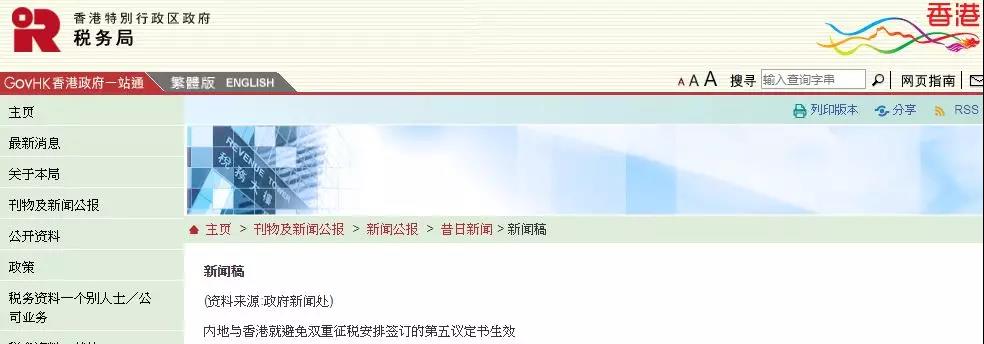 内地与香港就避免双重征税安排签订的第五议定书生效!