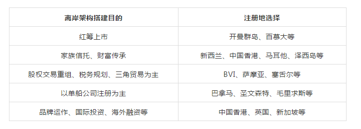 不同企业、不同需求,离岸架构的搭建方式、注册地选择不同。