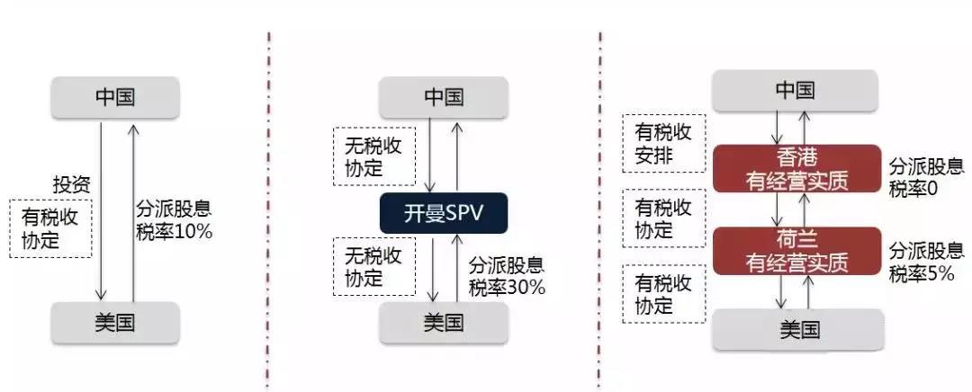 美国对没有签订双边税收协定的国家征收30%股息税,因此,通过离岸公司非但不能节省税收,更适得其反,承担更高的税负。只有充分考虑了投资目标国内法、双边及多边协议及条约、及特殊地域优惠后做出的投资架构才是适合的。