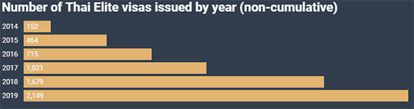 综合上述的各类优势,(根据官方数据显示)泰国的精英居留计划(精英签证)在2019年再次打破纪录,会员人数比2018年增加了2149人,同比上涨28%。
