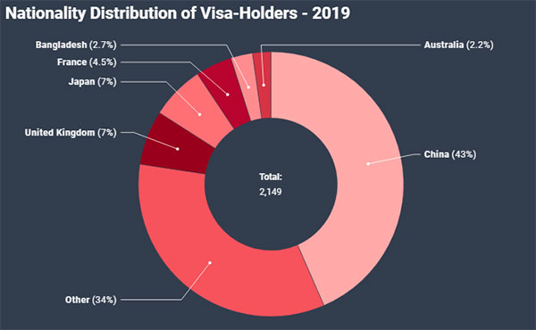 在计划的转变过程中,中国申请人也发挥重要力量,根据官网数据显示,申请人国籍在稳步扩大,截至2019年,中国人的参与度从2018年的三分之一上升到了43%。