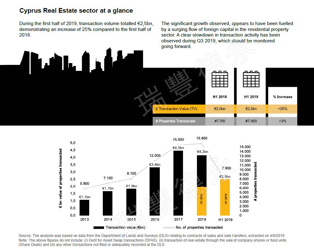 普华永道(PWC)的塞浦路斯房地产市场报告称,与去年同期相比,2019年上半年的房地产交易(销售合同和转让)价值增长了25%,达到25亿欧元。建筑活动继续扩大,同一期间建筑许可证总值增加了一倍以上。