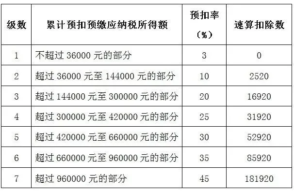 无免税额的个人所得税税率表