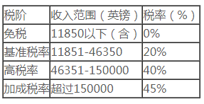 般情况下,英国税收居民的个人所得税税率如下: