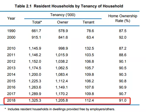 新加坡政府一直推行“居者有其屋”的计划,希望大部分国民拥有自己的房产。根据公开数据显示,新加坡家庭拥有房屋的比率,在2018年达到了91%,是过去19年来的新高,基本上是“居者有其屋”了。