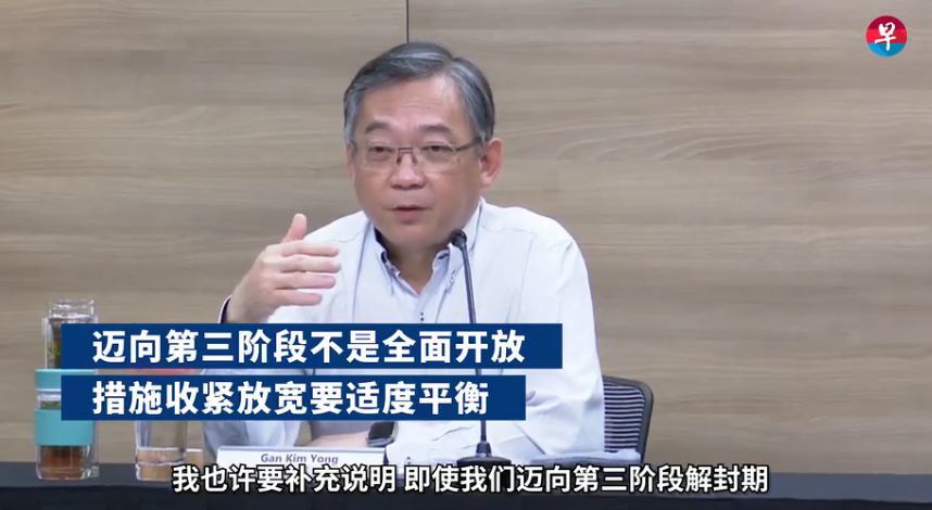 颜金勇在宣布相关消息的时候进一步指出,即使新加坡朝第三阶段前进,政府仍会评估各种活动和行业的风险,不时调整或收紧部分限制。