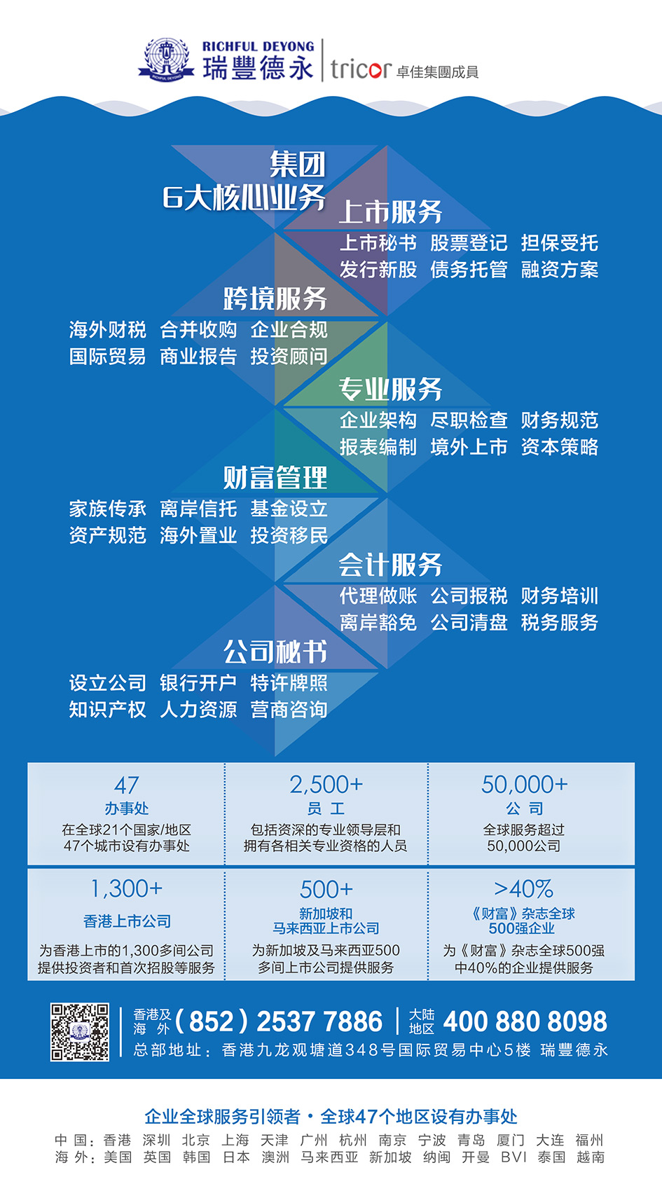 瑞丰德永集团直接代办全球近30个属地的离岸公司注册。