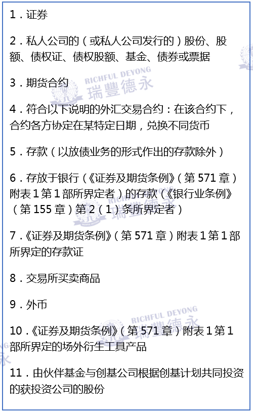 除了建议为附带权益提供税务宽减外,财经事务及库务局局长表示,此次立法也会对以私人形式发售的基金的利得税制度作出若干改善,以利便基金在香港营运,包括容许基金持有的特定目的实体,可持有和管理《税务条例》(112章)-附表16C指明的类别的资产,具体指: