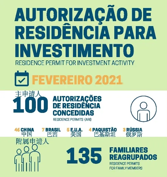 根据葡萄牙移民局(SEF)发布了20212月分黄金居留许可数据,2月份葡萄牙SEF235位申请者(100位投资人+135位家属)授予了黄金居留许可,相比20211月份获批的135位申请者(55位投资人+80位家属)环比增长了82%。