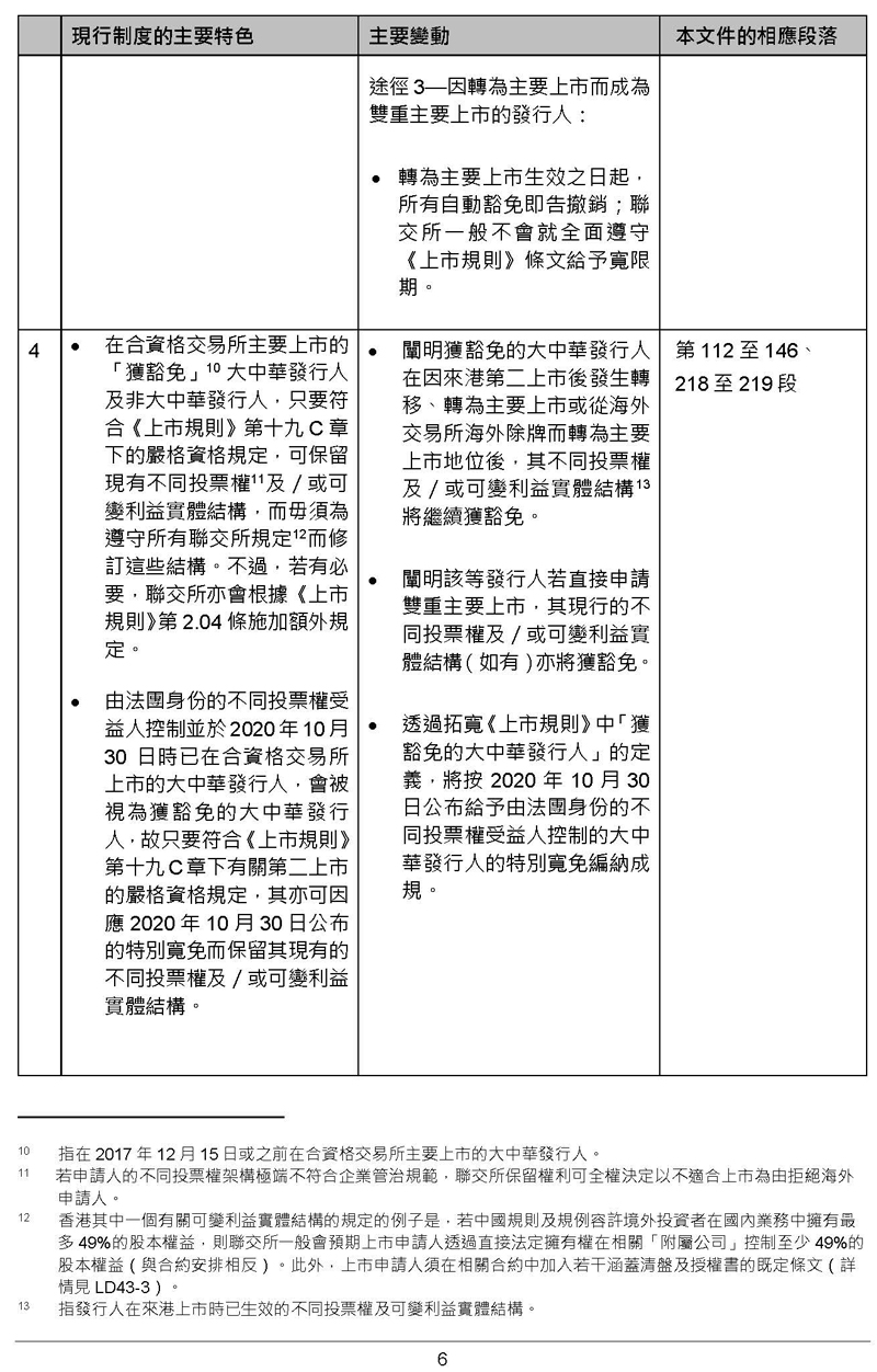 其次,港交所现行规定「同股不同权」发行人来港上市,其特权股份每股最多只能享有10票的投票权。然而部分中概股的不同投票权结构未必能够满足此要求,在回流本港过程中,这些中概股需要刻意改动以满足联交所的规定又实属没有必要,也不切实际。