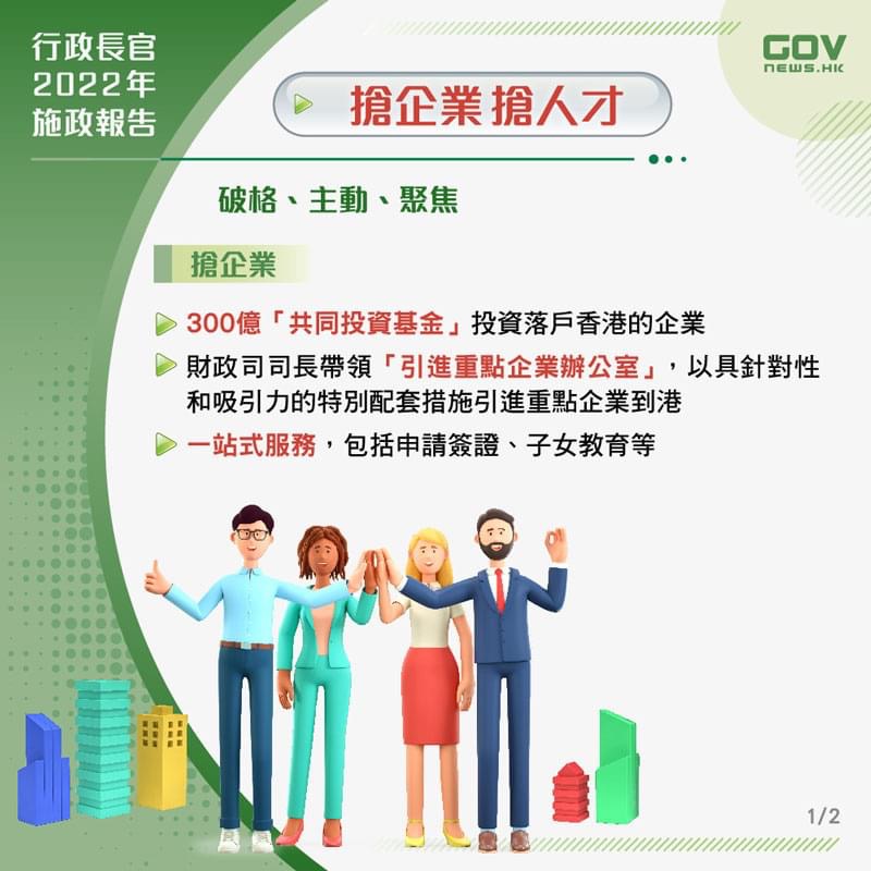 2022年10月19日,香港新任特首李家超发布第一份《施政报告》,李家超在施政报告中提出一系列新措施,招商引资引才,强化香港竞争力。香港政府将成立多个单位,专责招揽企业和人才来港发展,并优化多项输入人才计划,加强吸引力。