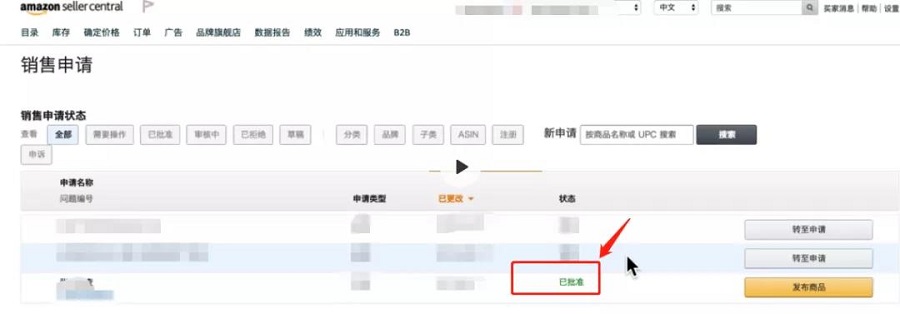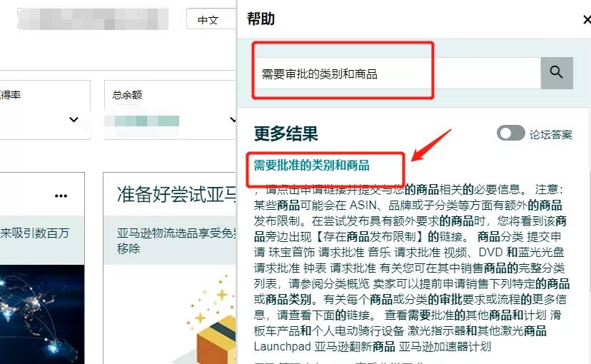 在亚马逊卖家后台搜索框中输入——需要审批的类别和商品。