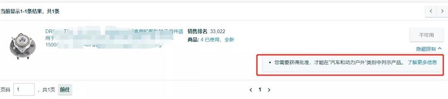 在页面的右下角会出现显示限制,点击出现:“您需要获得批准,才能在****类别中列示产品?!?br />