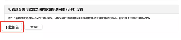 ② 您可以选择部分商品退出:进入到【亚马逊物流欧洲整合服务库存】页面,点击“report”下载“商品状态报告”,将部分商品退出欧洲配送网络(EFN)