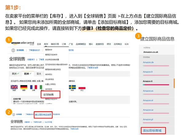 步骤二:在英国店铺以及以下任一或所有欧盟店铺中发布商品信息:德国、法国、意大利和西班牙