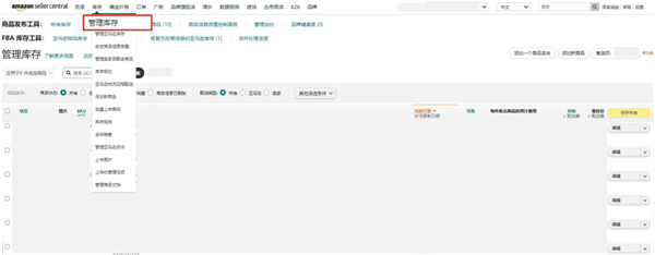 您可以通过卖家平台的菜单栏的【库存】,进入到【管理库存】页面,查看您目前商品的库存及可售状态。