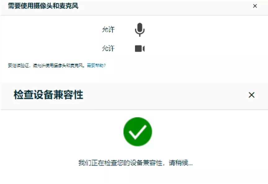 1.2 加入视频通话时,请允许使用摄像头和麦克风,系统会自动检测您的设备兼容性。