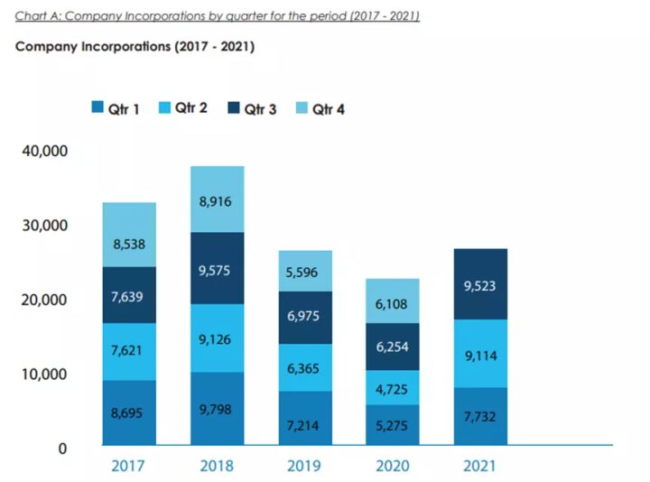 BVI公司由于经济实质与疫情影响,过去几年的受欢迎程度下降了不少。最近BVI金融服务委员会刊载了2021年第三季度的简报,显示BVI公司前三季度注册数量比前两年的年度总注册数量都多。