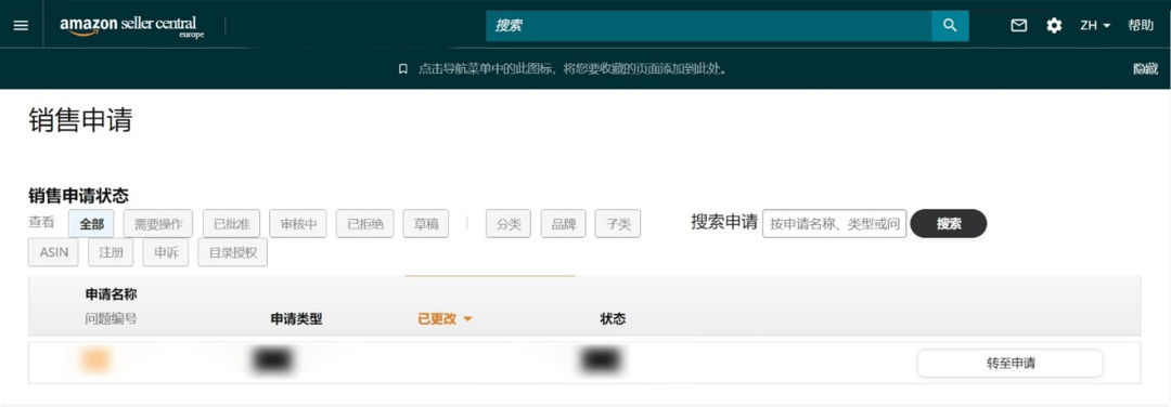 ④ 您会被引导至销售申请页面查看申请状态。