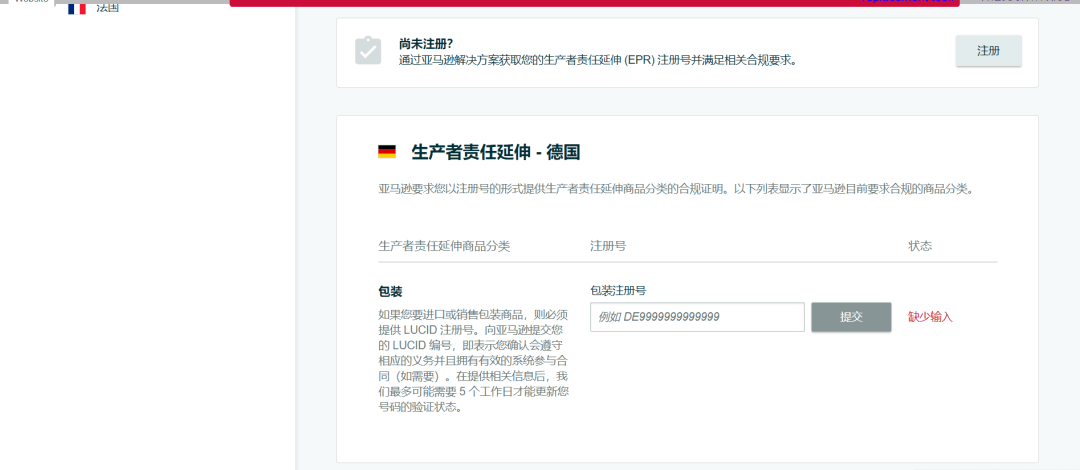 除了符合德国税务要求之外,您需要关注生产者责任延伸(EPR)相关义务的履行。如果您的商品因德国包装法不合规而受亚马逊采取强制措施,请参考以下内容,对采取措施的商品进行恢复。