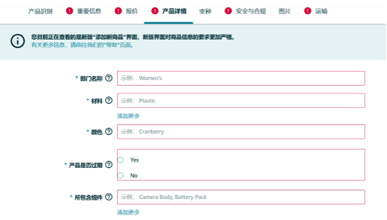 从12月1日起,卖家在上述品类新增商品信息时,都需要为属性提供一个有效值(例如颜色,尺寸),否则商品将不会添加到目录中。