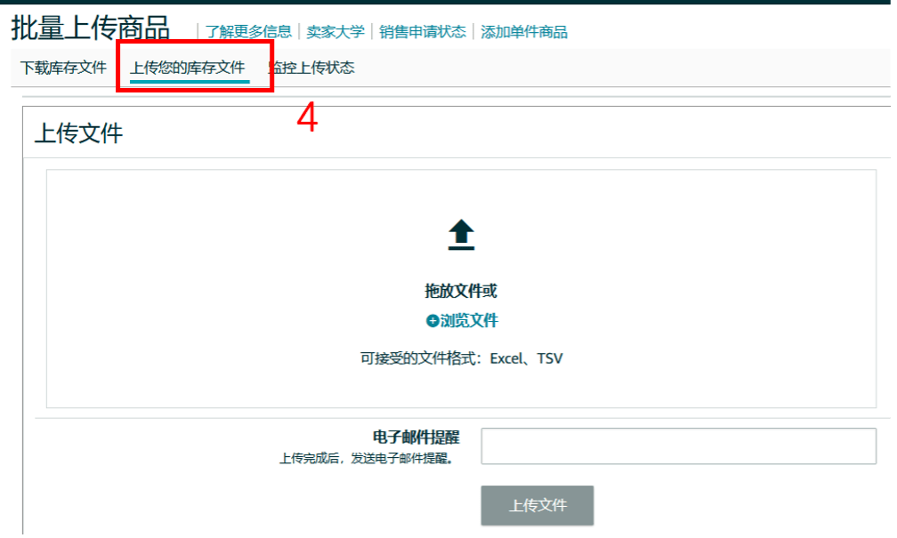 回到卖家平台并上传文件