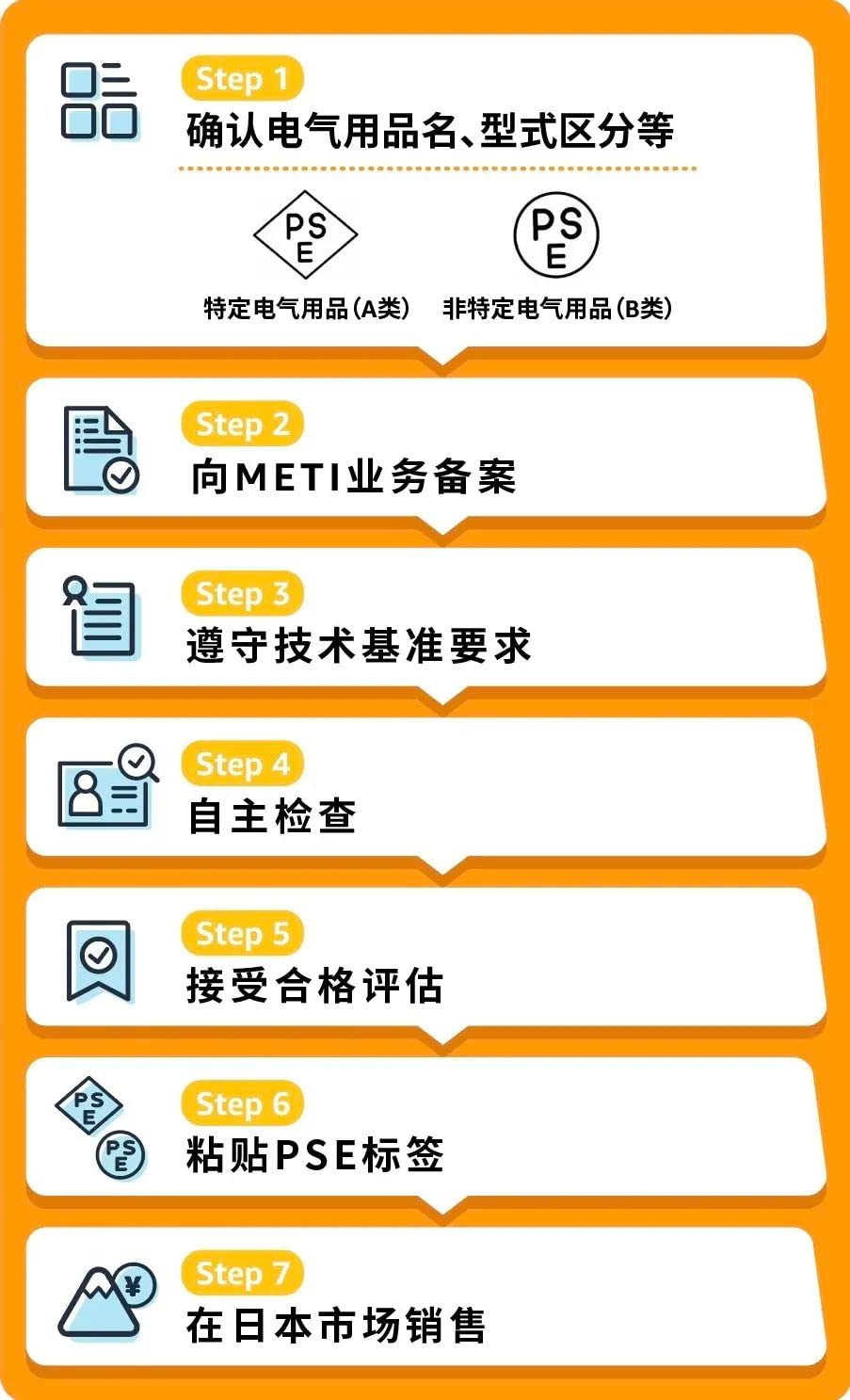 因PSE针对A类特定电气用品和B类非特定电气用品所要求的认证材料不同,请根据您销售的具体电气用品,先确认电气设备的类别,再提供对应的PSE合规证明文件。