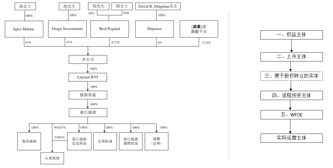 第五层为境内外商独资公司,WFOE公司(Wholly Foreign Owned Enterprise),用于控制境内的实际运营主体。绿源集团此次采用了直接持股模式,对于有外商投资限制的行业亦可以采用协议控制的方式,也就是常说的VIE模式。