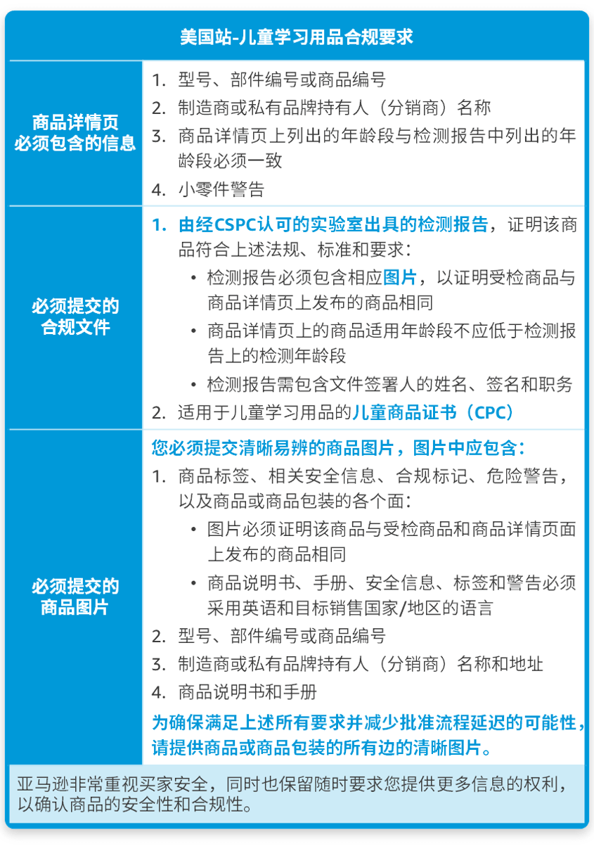 美国站儿童学习用品合规要求