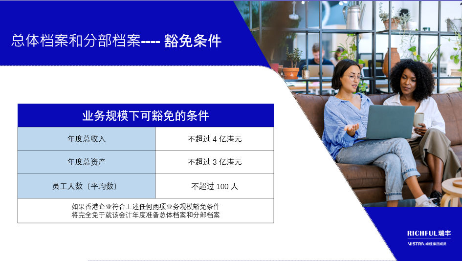 满足以下任何两个条件的香港实体,无需为会计期间编制总体档案和分部档案: