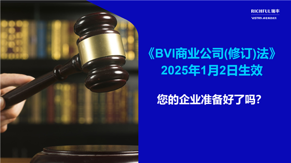 对于在BVI设有业务或计划在该地区设立公司的企业来说,了解并准备应对这些变化至关重要。为了确保顺利过渡到新法律框架,BVI的监管机构可能会提供详细的指导方针和实施细节。RICHFUL瑞丰目前正在密切关注相关更新,积极确定提交资料的相关流程细节,并将在接下来的几周和几个月内与您保持持续沟通,以便于您及时调整运营和合规策略,确保符合新法律的要求。