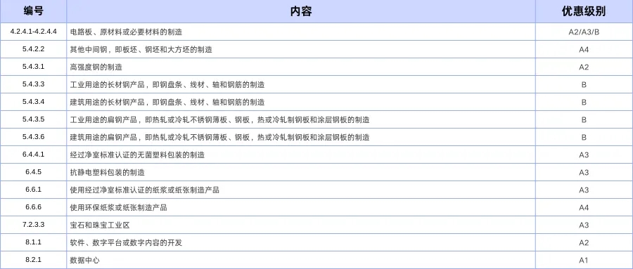3、删除部分行业类别:取消造纸业的投资优惠,推动绿色经济转型,减少环境污染。