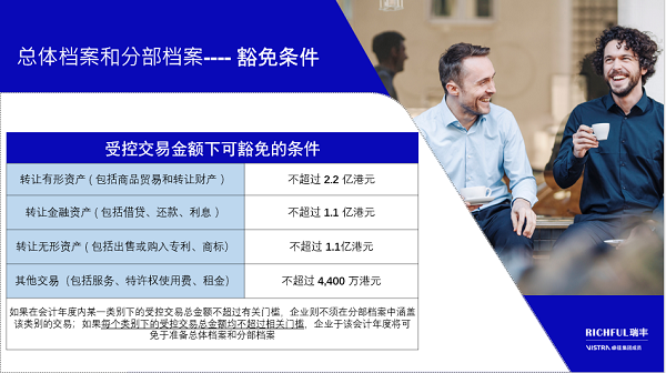 2)交易金额豁免当某类受控交易总额未超过规定门槛时,可豁免本地文档准备: