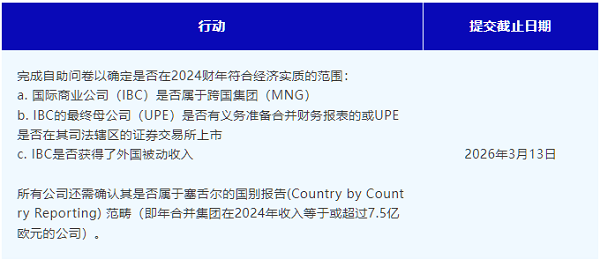 根据塞舌尔商业税法(Seychelles Business Tax Act),所有在报告期间活跃的塞舌尔公司,需向塞舌尔税务局(Seychelles Revenue Commission)报告其在2024财年是否符合经济实质的范围。