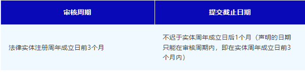 大型实体和非大型非控股实体必须准备年度财务总结,并保存在其注册办公室。常见截止日期: