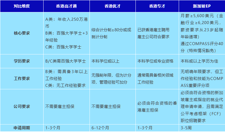 香港和新加坡人才签证的核心特点