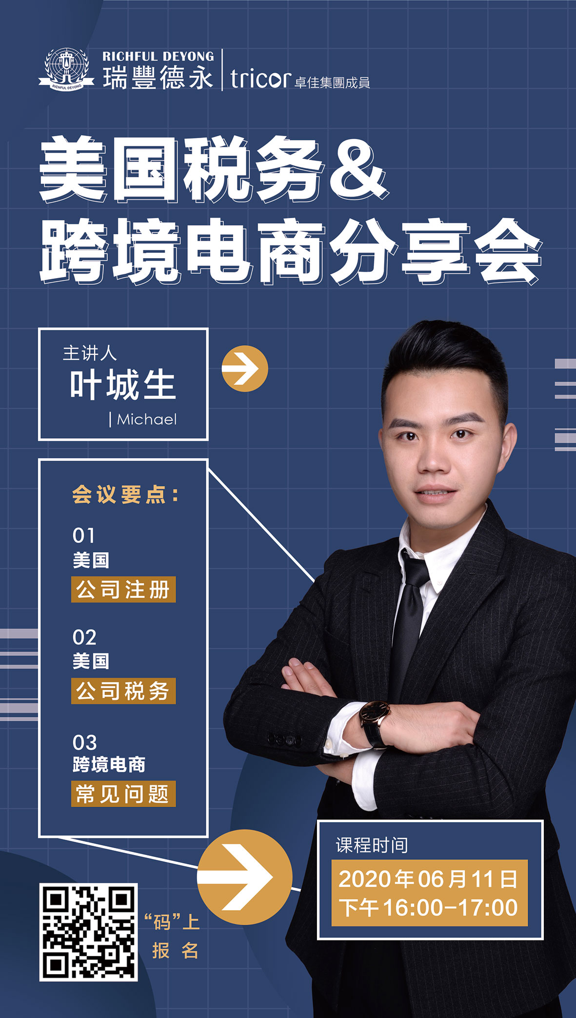 从公司注册,到跨境电商业务运作,以及美国税务知识等操作要点和注意事项,6月11日《美国税务&跨境电商分享会》线上研讨会已为您总结和准备好干货,希望通过分享知识要点,帮您找业务运营与美国税制的实际突破口,逐一解答您的各项疑惑。